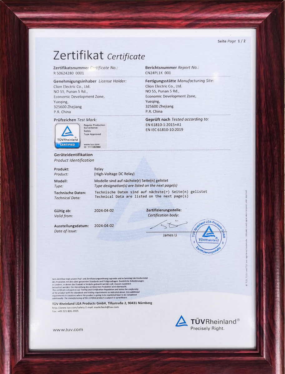 4月11日,欣大電氣高壓直流繼電器產(chǎn)品,成功通過EN IEC 61810-10: 2019標(biāo)準(zhǔn)認(rèn)證,國際獨立第三方檢測、檢驗和認(rèn)證機構(gòu)德國萊茵TüV集團正式為欣大電氣頒發(fā)認(rèn)證證書。浙江欣靈電氣銷售有限公司銷售總監(jiān)周仕程、TüV萊茵大中華區(qū)太陽能與商業(yè)產(chǎn)品服務(wù)零部件業(yè)務(wù)總經(jīng)理施兵等雙方代表出席本次頒證儀式。