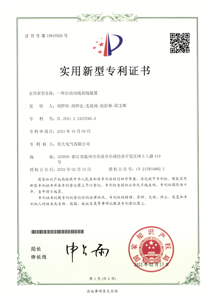 [專(zhuān)利證書(shū)]一種自動(dòng)切線剝線裝置(實(shí)用)