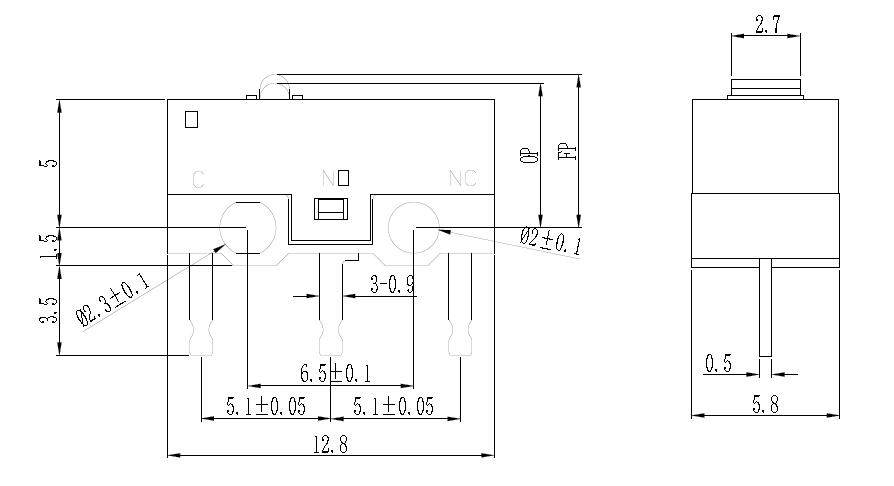 開關(guān)安裝時使用M2螺釘,使用平墊圈,彈性墊圈來緊固。此時