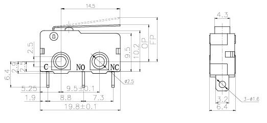 根據(jù)EN61058-1 ,該開關(guān)的最小絕緣層厚度應(yīng)該為1.1mm,端子和安裝板之間的最小空間距離應(yīng)該為1.6mm。
