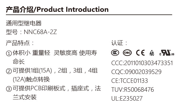 - 欣大電氣NNC68A(JQX-13F-2Z, LY2)系列通用電磁繼電器采用無塵車間加工技術(shù)及自動化生產(chǎn)線,選材精良,優(yōu)質(zhì)銀合金觸點(diǎn),上等銅材,符合ROHS標(biāo)準(zhǔn)的元器件及原材料,國際標(biāo)準(zhǔn)尺寸及安裝方式,具有高容量,靈敏度強(qiáng),耐久性好,內(nèi)部防塵,壽命長等優(yōu)點(diǎn),廣泛應(yīng)用于家用電器,PCB線路板,工業(yè)控制系統(tǒng),自動化控制系統(tǒng)等領(lǐng)域。