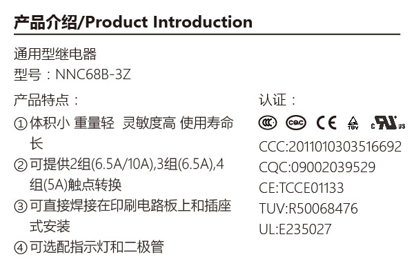 - 欣大電氣NNC68B(HH53P, MY3)系列通用電磁繼電器采用無塵車間加工技術(shù)及自動化生產(chǎn)線,選材精良,優(yōu)質(zhì)銀合金觸點,上等銅材,符合ROHS標準的元器件及原材料,國際標準尺寸及安裝方式,具有高容量,靈敏度強,耐久性好,內(nèi)部防塵,壽命長等優(yōu)點,廣泛應(yīng)用于家用電器,PCB線路板,工業(yè)控制系統(tǒng),自動化控制系統(tǒng)等領(lǐng)域。
