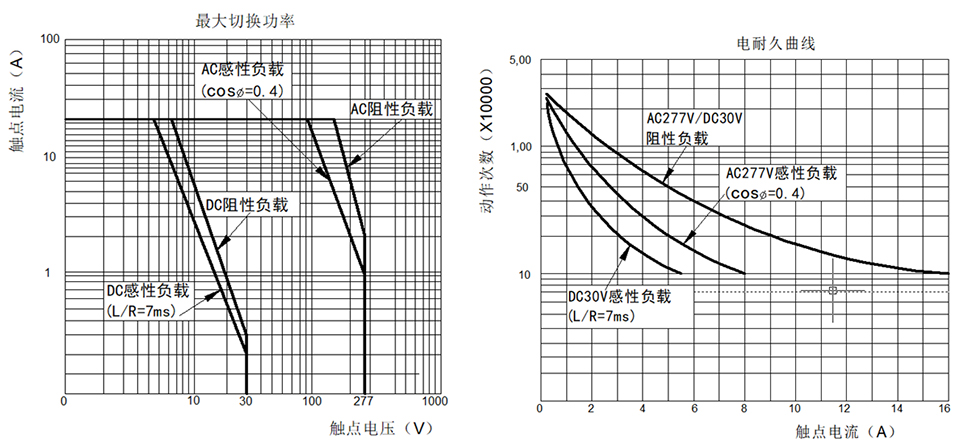在沒有明確說明的情況下,所有欣大繼電器殼體上標(biāo)識的負(fù)載電流均為阻性負(fù)載。在額定切換電壓下,電感負(fù)載的允許電流不應(yīng)超過額定阻性負(fù)載的30%,電動機負(fù)載的允許電流不應(yīng)超過額定阻性負(fù)載的20%,燈性負(fù)載的允許電流不應(yīng)超過額定阻性負(fù)載的10%,容性負(fù)載的允許電流不應(yīng)超過額定阻性負(fù)載的5%。為了產(chǎn)品實際使用的可靠性,在選型時建議選擇觸點負(fù)載電流值不超過產(chǎn)品額定負(fù)載下穩(wěn)態(tài)電流值的60%~70%。