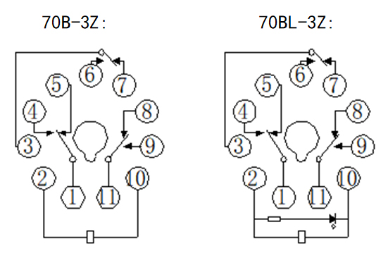 ④ 觸點形式:3H= 3組常開型;3D= 3組常閉; 3Z=3組轉(zhuǎn)換型