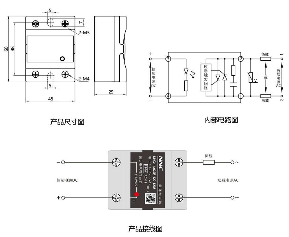 產(chǎn)品技術(shù)參數(shù)控制電壓 3-32VDC 控制電流 6-25mA 接通電壓 3VDC 關(guān)斷電壓 1VDC 反向電壓 32VDC 負(fù)載電壓 38:24-440VAC 120:60-1200VAC 負(fù)載電流 60A、80A、100A、120A