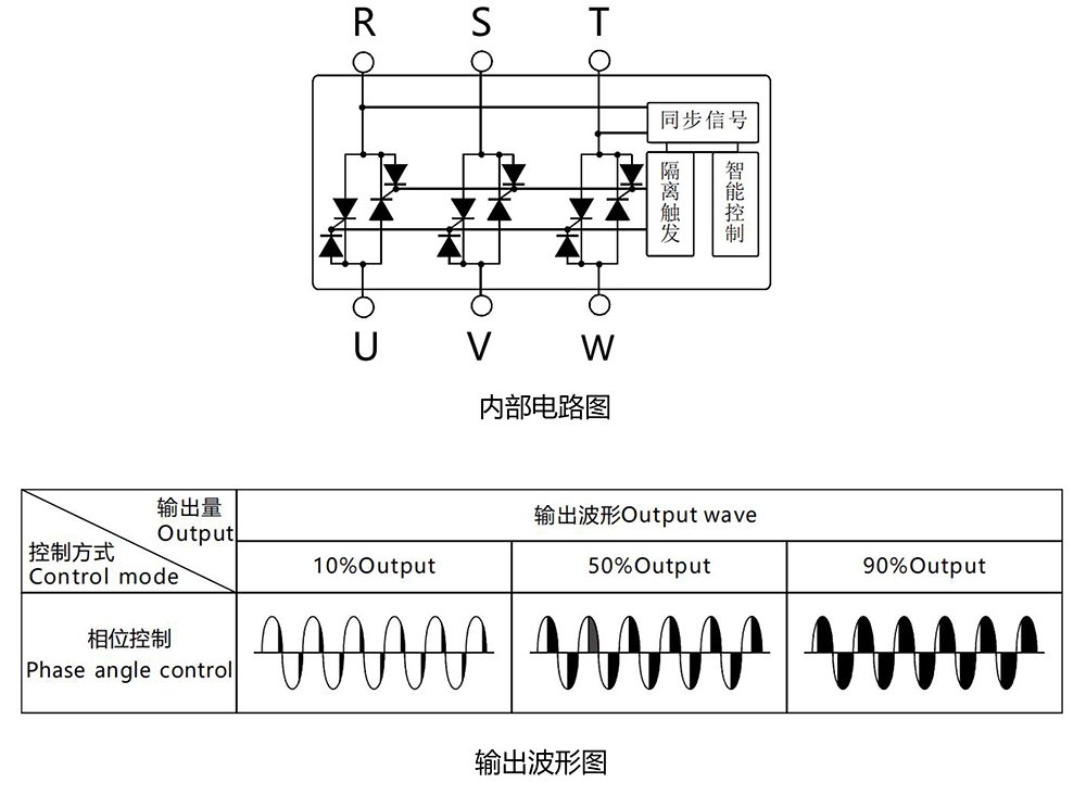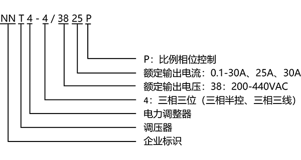?適用負(fù)載:三相三線半控型:定阻抗負(fù)載,遠(yuǎn)紅外、IR 燈管、硅碳棒負(fù)載等不適型號說明