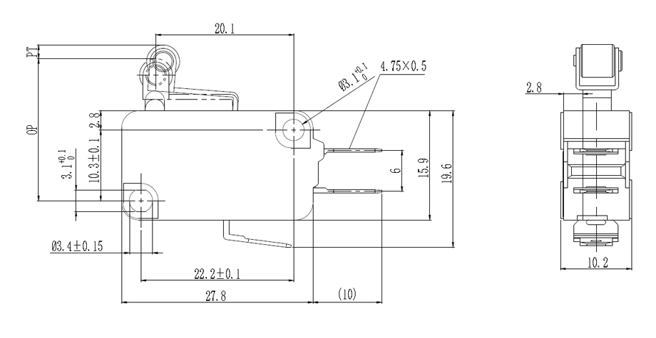 動作特性\型號 NV-21G-1□6 NV-16G-1□5 NV-16G-1□4 動作力 OF最大 4.71N 2.35N 1.18N 回復力 RF最小 0.49N 0.49N 0.15N 預行程 PT最大 1.6mm 過行程 OT最小 0.8mm 響應差的行程 MD最大 0.6mm 動作位置 OP 20.7±0.6mm 使用方法