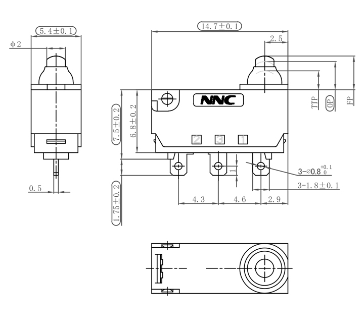 項(xiàng)目 OF 動(dòng)作力 ≤130gf RF 釋放力 ≥13gf FP 自由位置 ≤4mm OP 動(dòng)作位置 30.5±0.2mm TTP 極限位置 ≥5.1mm