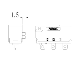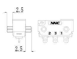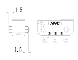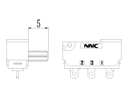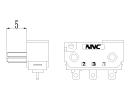 型號(hào) 額定電壓 額定負(fù)載 壽命 NFW5-□1: AC 250V 0.1A 1E5 DC 48V 0.1A 1E5 DC 12V 3A 1E4 NFW5-□2: AC 250V 3(1)A 1E4 DC 36V 3A 1E4 DC 12V 3A 1E5 驅(qū)動(dòng)桿類(lèi)型