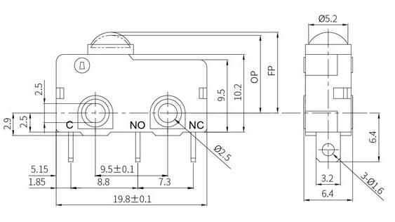 NL-5-F2-M002OF 動 作 力 3.2±1.1N RF 釋 放 力 最小0.9N FP 自由位置 最大11.1mm OP 動作位置 10.3±0.25mm