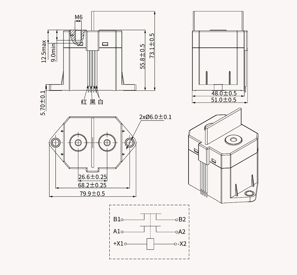 3.B1(白色線)、B2( 白色線)為輔助觸點,輔助觸點無極性,線號為20AWG,長300土20mm
