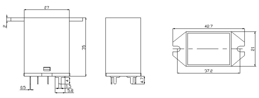 動(dòng)作時(shí)間(額定電壓下) ≤20ms 釋放時(shí)間(額定電壓下) ≤20ms 絕緣電阻 1000MΩ 介質(zhì)耐壓(漏電流1mA ) 線圈與觸點(diǎn)間 1500VAC(1分鐘)漏電流1mA. 斷開觸點(diǎn)間 1000VAC(1分鐘)漏電流1mA. 異極觸點(diǎn)間 1500VAC(1分鐘)漏電流1mA. 振動(dòng)特性 誤動(dòng)作 振幅 1mm,10~55Hz 振動(dòng)耐久性 振幅 1mm,10~55Hz 沖擊特性 誤動(dòng)作 最高加速度98m/s2持續(xù)時(shí)間11ms 耐沖擊 最高加速度980m/s2持續(xù)時(shí)間6ms 環(huán)境溫度 -40℃~85℃ 相對(duì)濕度 5%~ 85% RH 端子結(jié)構(gòu) PCB焊接式端子