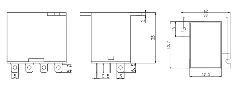 轉(zhuǎn)換型:中間是動觸點,線圈不通電時,動觸點和其中一個靜觸點斷開和另一個閉合,線圈通電后,動觸點就移動,使原來斷開的成閉合狀態(tài),原來閉合的成斷開狀態(tài),達(dá)到轉(zhuǎn)換的目的。