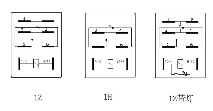 ⑤ 觸點(diǎn)形式:1H= 1組常開型H;1D= 1組常閉 D; 1Z= 1組轉(zhuǎn)換型Z