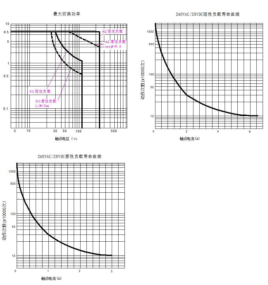 認(rèn)證類別 CQC UL TUV CE 證書號 NO.CQC14002105333 E235027 R 50260442 M.2023.206.C91028 負(fù)載要求 277VAC/30VDC 240VAC/28VDC 277VAC/30VDC 277VAC/30VDC 性能曲線圖