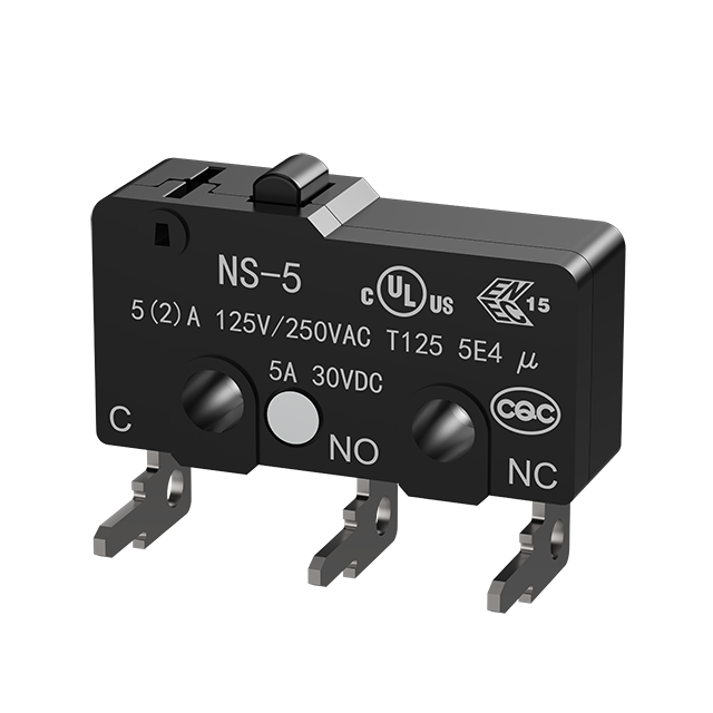 動作特性\型號 NS-10D2 NS-5D2 NS-5-FD2 OF 動作力 最大1.47N 最大1.47N 最大0.59N RF 釋放力 最小0.25N 最小0.25N 最小0.04N PT 工作行程 最大0.5mm OT 超越行程 最小0.5mm MD 差動行程 最大0.1mm OP 動作行程 8.4±0.5mm