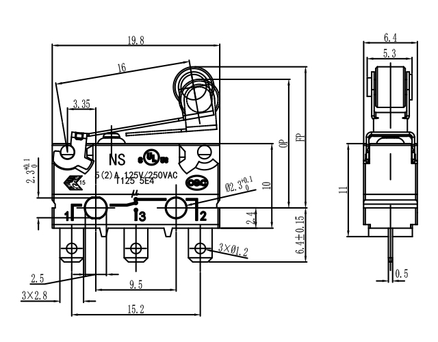 ⑤ 接觸規(guī)格:1:雙投型(轉(zhuǎn)換);2:常閉型(NC);3:常開型(NO)