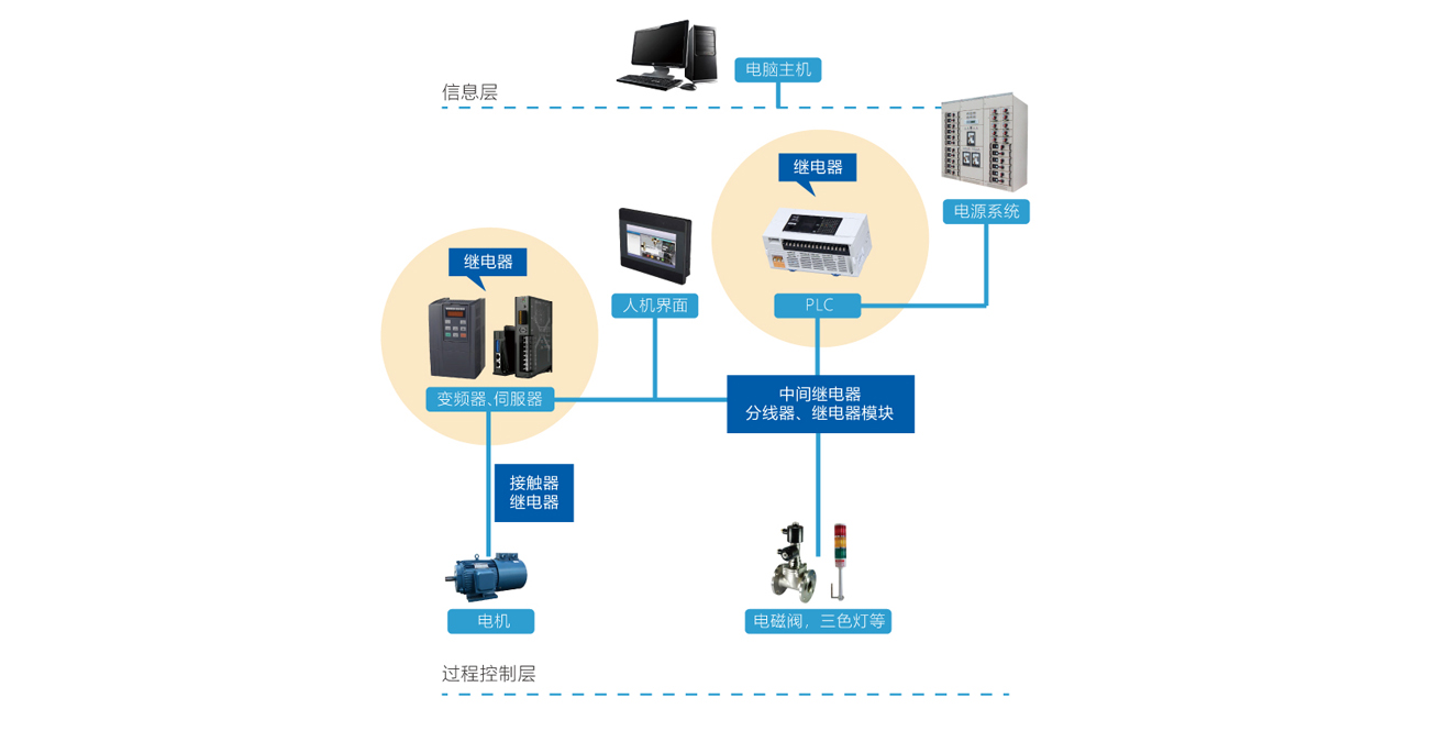工控繼電器及配套產(chǎn)品廣泛應(yīng)用于工業(yè)領(lǐng)域PLC、電源控制、安全控制、中繼控制等,滿足工業(yè)控制各類(lèi)負(fù)載要求下的不同控制需求。
