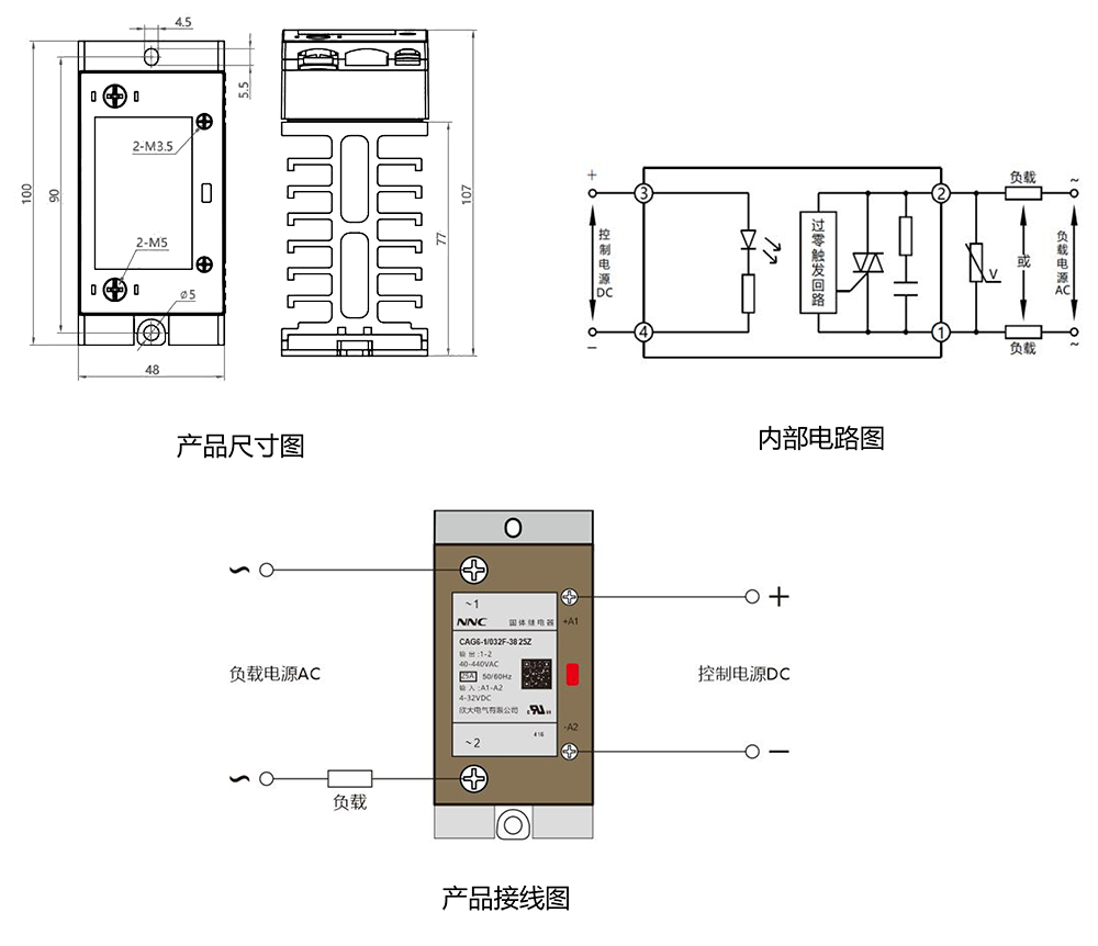 產(chǎn)品技術(shù)參數(shù)控制電壓 4-32VDC 控制電流 <20mA 接通電壓 4VDC 關(guān)斷電壓 1VDC 反向電壓 32VDC 負(fù)載電壓 40-440VAC 負(fù)載電流 20A、25A、30A