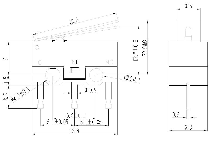 開關(guān)安裝時使用M2螺釘,使用平墊圈,彈性墊圈來緊固。此時