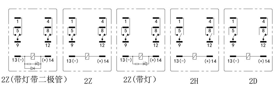 ⑤ 觸點形式:2H= 2組常開型;2D= 2組常閉; 2Z= 2組轉換型