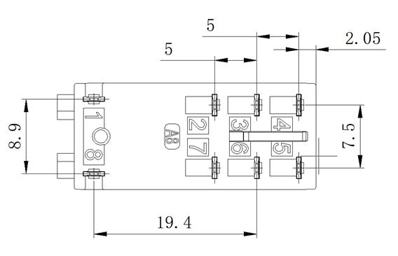 振動(dòng)特性 誤動(dòng)作 振幅 1mm,10~55Hz 振動(dòng)耐久性 振幅 1mm,10~55Hz 沖擊特性 誤動(dòng)作 最高加速度98m/s2持續(xù)時(shí)間11ms 耐沖擊 最高加速度980m/s2持續(xù)時(shí)間6ms 環(huán)境溫度 -40℃~85℃ 相對(duì)濕度 5%~ 85% RH 端子結(jié)構(gòu) 插座式端子 保護(hù)結(jié)構(gòu) 防塵型 重量 約20g 外形尺寸、安裝孔與線路圖(單位:mm)