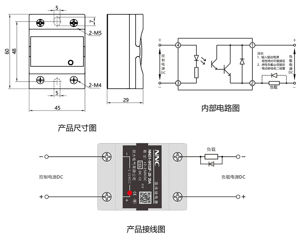 產(chǎn)品技術(shù)參數(shù)控制電壓 3-32VDC 控制電流 10-45mA 接通電壓 5VDC 關(guān)斷電壓 1VDC 反向電壓 32VDC 負(fù)載電壓 12-250VDC 負(fù)載電流 10A、15A、20A、25A、30A、40A、60A