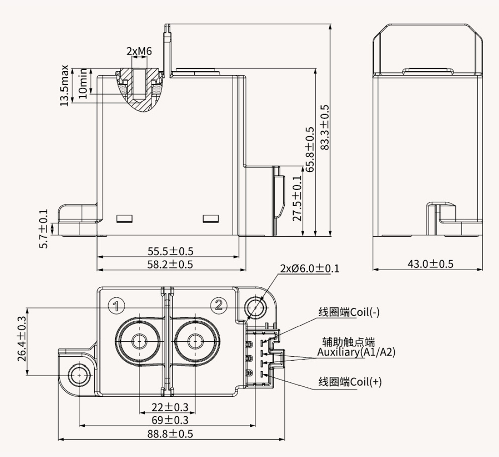 3.A1、A2 為輔助觸點,輔助觸點無極性