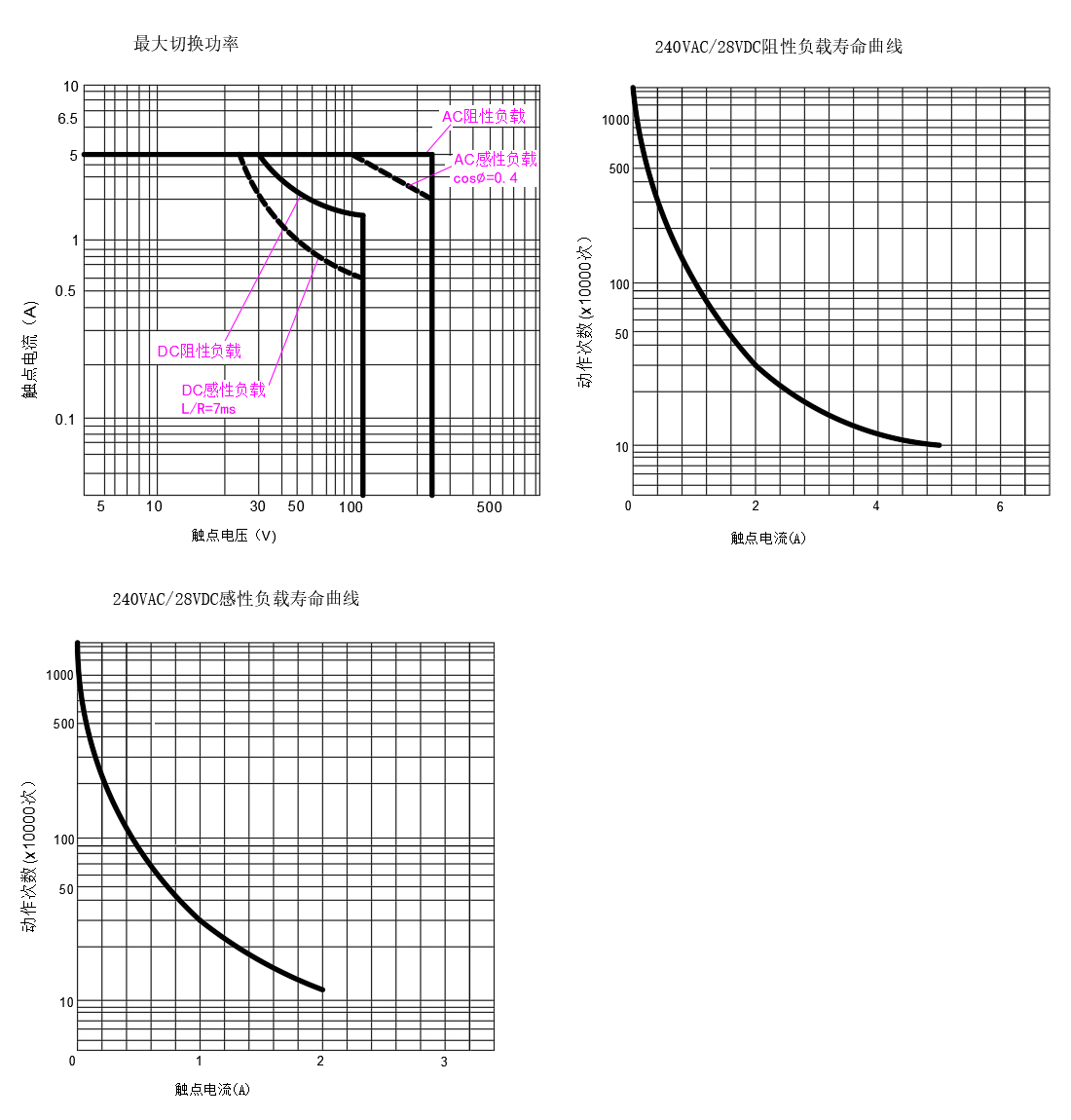 認(rèn)證類別 CQC UL TUV CE 證書(shū)號(hào) NO.CQC14002105333 E235027 R 50260442 M.2023.206.C91028 負(fù)載要求 277VAC/30VDC 240VAC/28VDC 277VAC/30VDC 277VAC/30VDC 性能曲線圖
