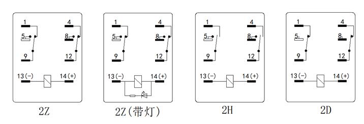 ⑤ 觸點形式:2H= 2組常開型 H;2D= 2組常閉 D; 2Z= 2組轉(zhuǎn)換型 Z
