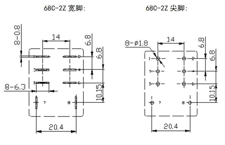 2C(Z)-轉(zhuǎn)換 2A(H)-常開(kāi) 2B(D)-常閉