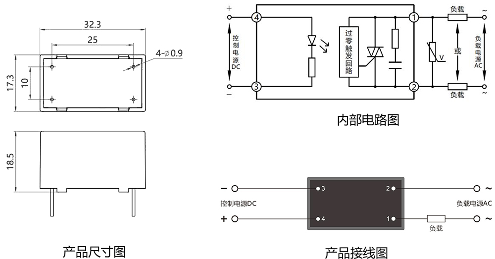 產(chǎn)品技術(shù)參數(shù)控制電壓 3-32VDC 控制電流 6-25mA 接通電壓 3VDC 關(guān)斷電壓 1VDC 反向電壓 32VDC 負(fù)載電壓 22:24-240VA 38:24-440VAC 負(fù)載電流 1A