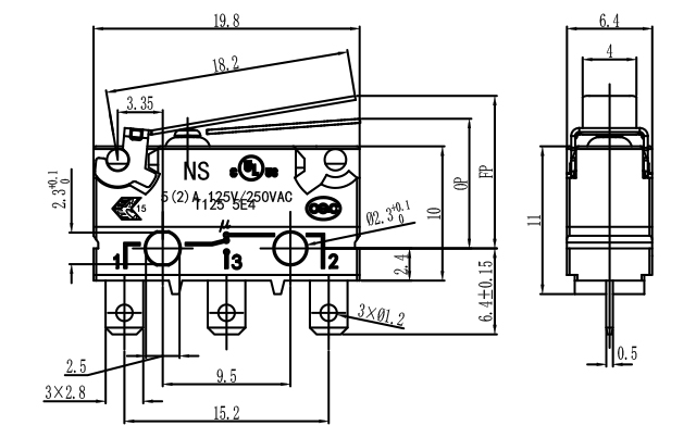 05:0.5A 125/250VAC;